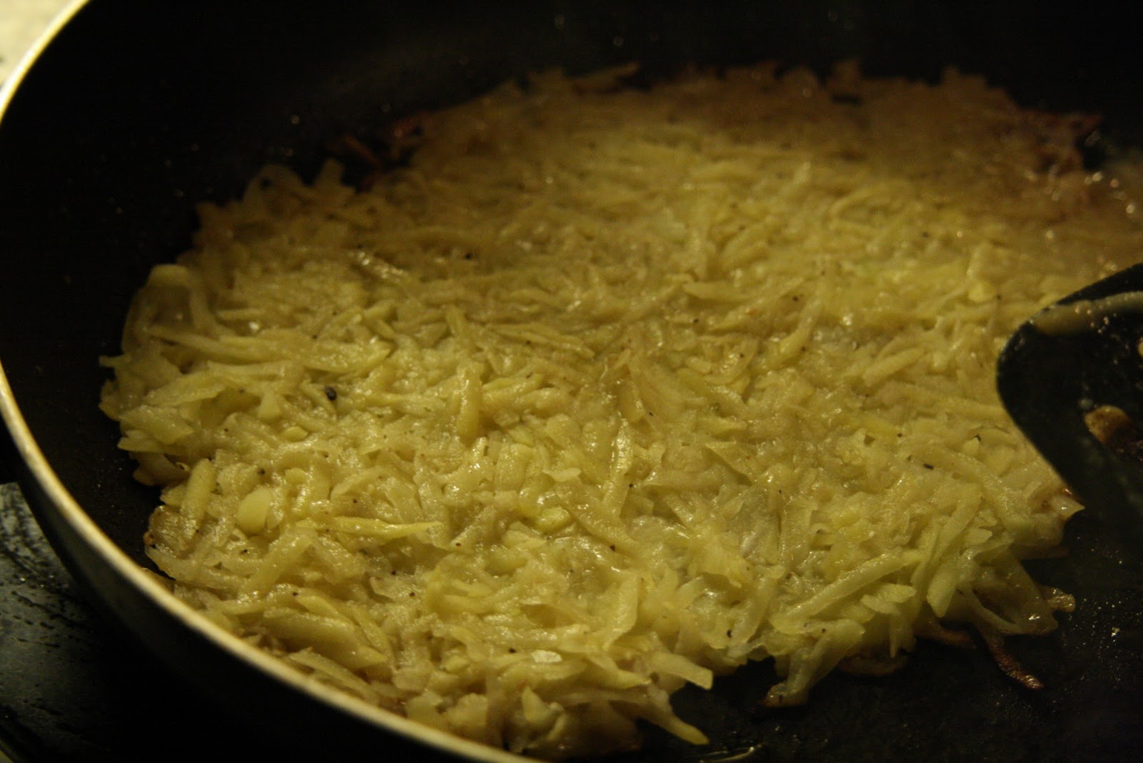 Klicka ut potatisblandningen och platta ut i en stekpanna. Stek rårakan gyllenbun på båda sidor.