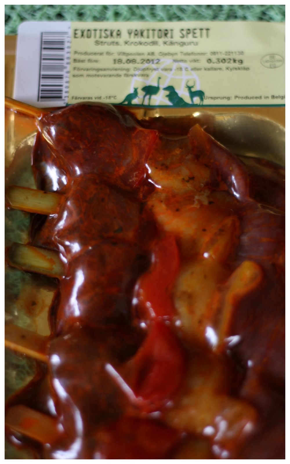 I helgen grillade vi för första gången i den nyinköpta grillen från Ö&B. Vi grillade inte riktigt det där traditionella som man brukar grilla utan vi hittade exotiska spett från viltpoolens sortiment och de var minst sagt exotiska med färdigmarinerat struts,krokodil och kängurukött på en liten pinne.