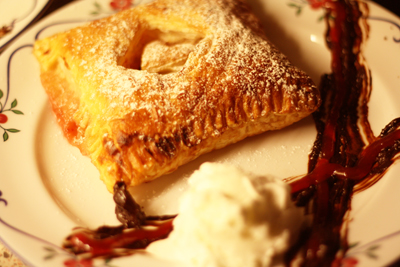Rabarber började inte ätas förrän på 1700-talet men användes långt tidigare som medicinalväxt. Det finns uppgifter om att man åt rabarber till lamm, rå med salt och peppar på den tiden men numera används växten oftast till desserter. Den som har anlag för njursten bör undvika rabarber eftersom den innehåller mycket oxalsyra. Här kommer en härlig rabarberdessert som gärna serveras med vaniljglass, smält choklad och lite jordgubbssylt.