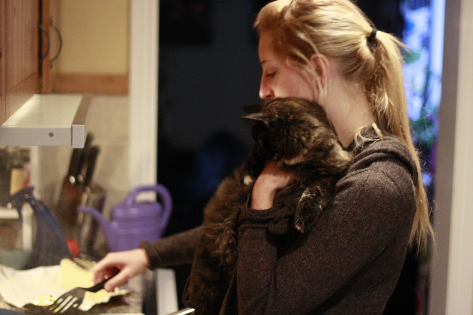 Jag har världens bästa hjälp (läs stjälp) vår lilla kissemisse decibel, hon älskar att hänga på axeln när man rör i grytorna och släpper man ner henne står hon vid fötterna och piper och blir inte tyst förrän man lyfter upp henne igen. Så här ser menyn ut för i morgon: