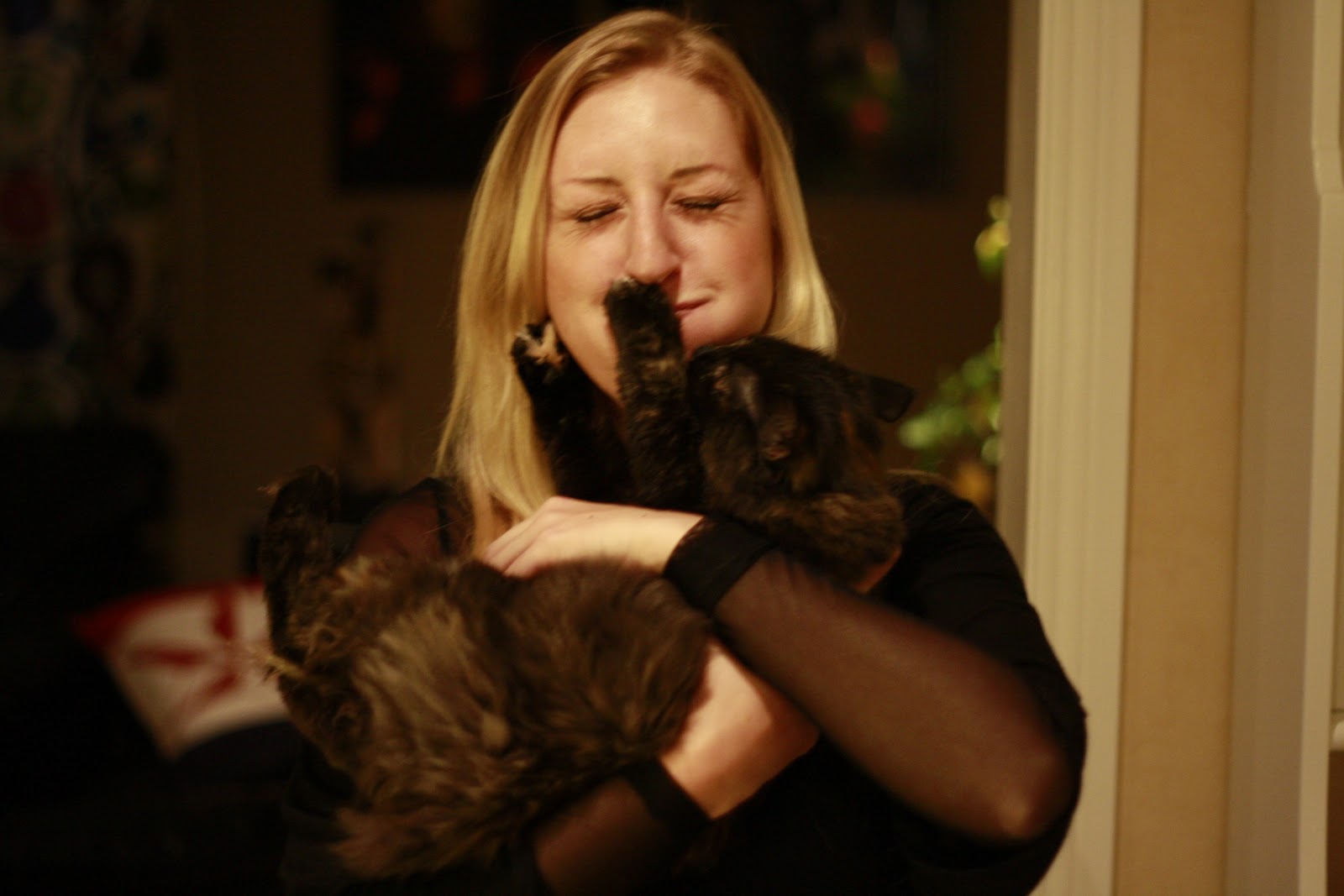 Ja, idag sms:a min bror till min telefon som faktiskt också nyligen gick sönder( undra vad som kommer gå sönder härnäst) och frågade om han kunde komma över på kaffe! Åh, klart han fick!Jag! om någon! behövde uppmuntras! Sen så brukar lilla katten Decibel vara så underhållande när vi har folk på besök!Jag tror många vill komma och hälsa på bara för att busa med henne. Hon är en riktig cirkuskatt! Och så har hon någon personlig störning eftersom hon är både snäll, kelig och arg på samma gång!Slåss gör hon! Bits och rivs!Och leker med allt utom sina egna leksaker!